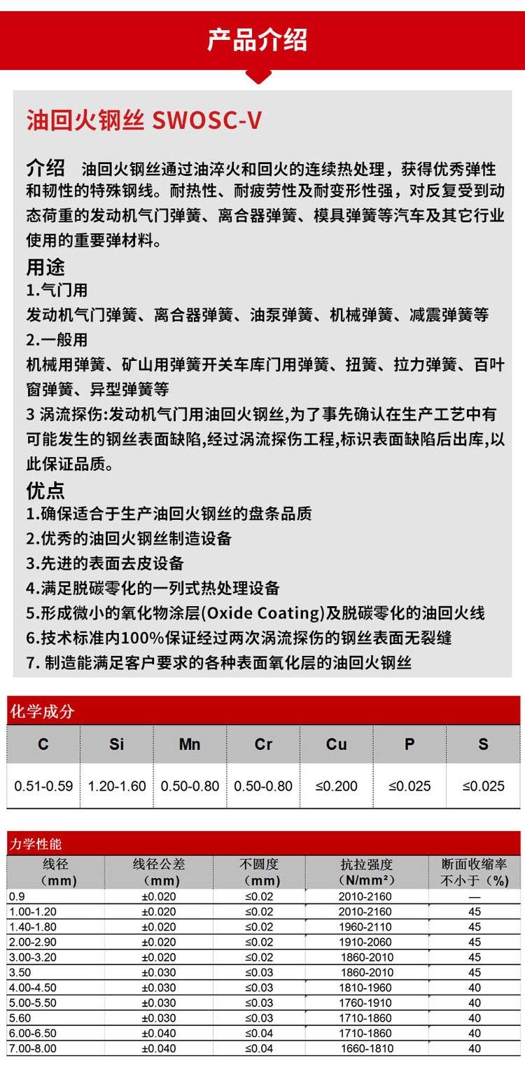 进口油回火 SWOSC-V 用于:气门弹簧/离合器弹簧/扭簧等